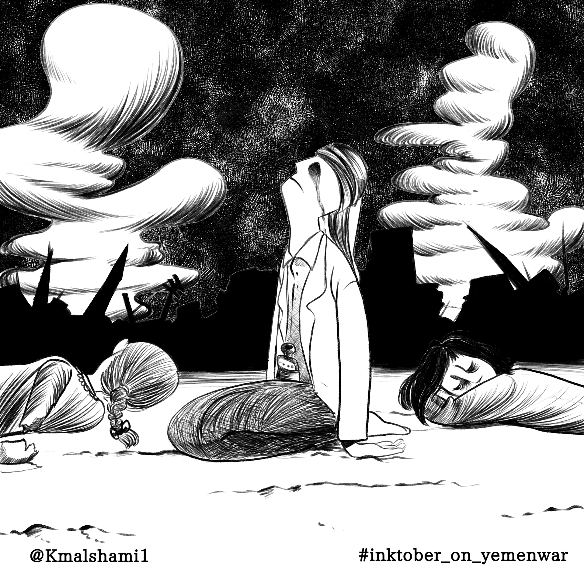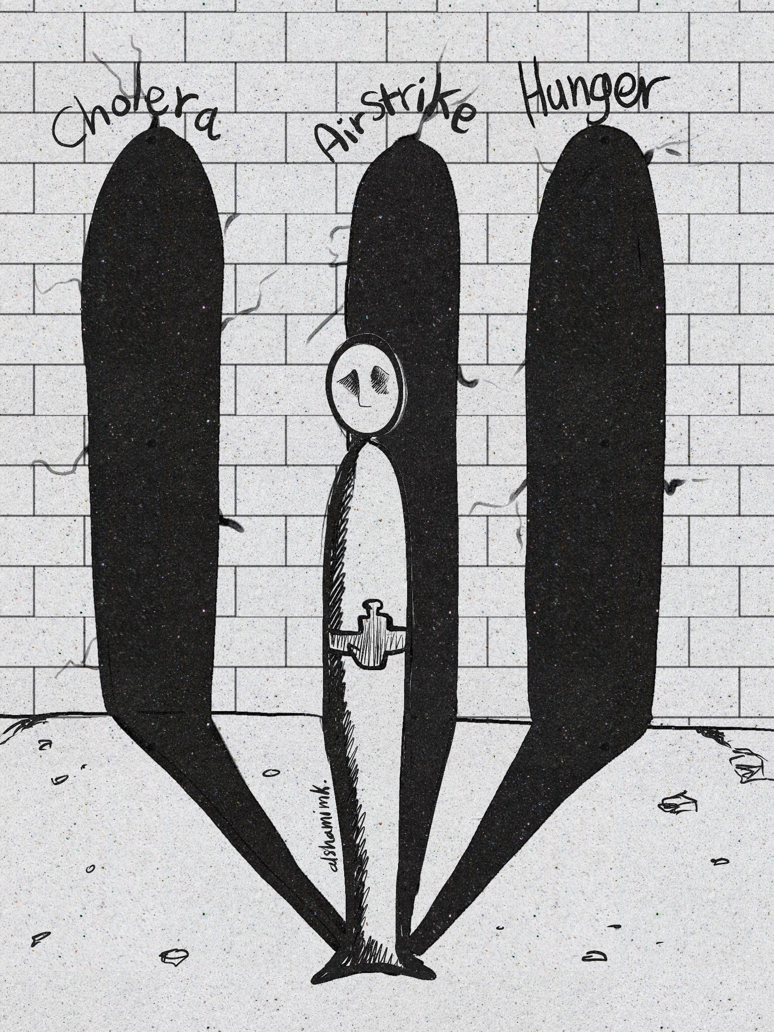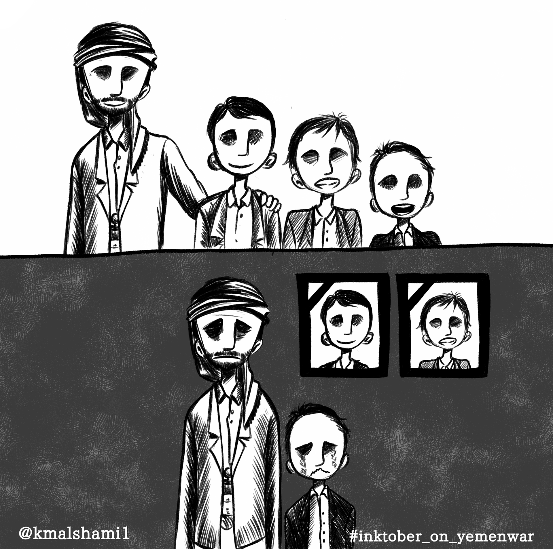 These illustrations serve as a lasting reminder of the war that began in Yemen in 2015 and continues to this day. Each image reflects the pain, resilience, and enduring struggle of my homeland—a visual testimony to a conflict that remains unresolved and deeply personal.